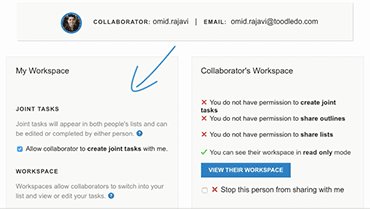 Share Tasks, Lists, or Outlines with your collaborators. Manage your privacy and permissions. Learn More