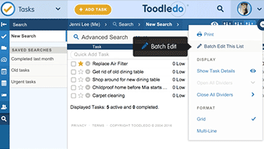 Edit several tasks at one time. Use with Advanced Search to find and edit exactly what you need. Learn More