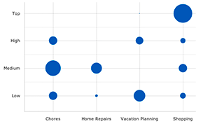 With the Bubble Chart, you can pick any two fields for your X-axis and your Y-axis and quickly see how many tasks are in each intersection.